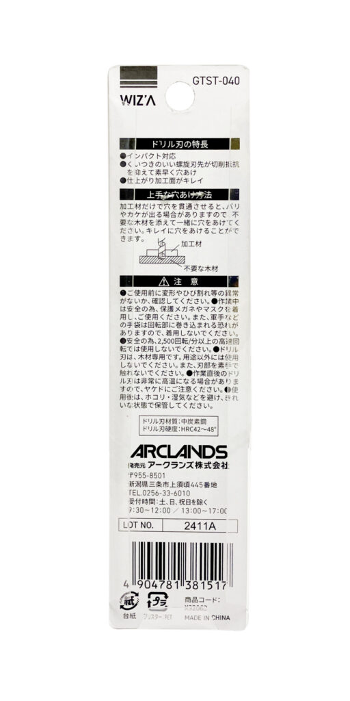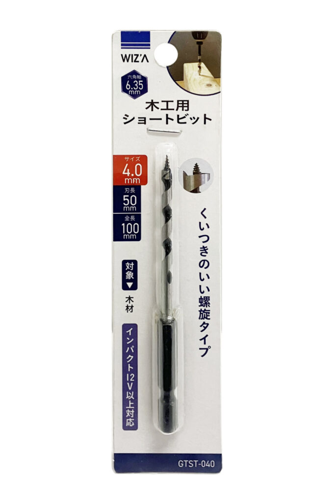 木工用ショートビット 4.0mm GTST-4 2024 9/05 WIZ'A 2024.09.05 × 木工用ショートビット 4.0mm GTST-4ブランド:WIZ'A JANコード:4904781381517商品コード:X32063 規格・品番:GTST-4商品サイズ(mm)-重さ(g)15仕様用途:木材の穴あけ ドリル刃径:4mm 刃長:50mm 刃先:螺旋タイプ商品コメント螺旋刃先が切削抵抗を抑えてすばやく穴あけ。 回転モードで使用して下さい。同じカテゴリーの商品木工用ショートビット 15.0mm GTST-15木工用ショートビット 10.0mm GTST-100六角軸 下穴ドリル 2.0mm 2PC WZ-PHD20木工用ショートビット 7.0mm GTST-7木工用極短ドリルビット セット 5本入り WZGM-5S木工用ドリル刃セット 丸軸 8PC WDS-8木工用ショートビット 13.0mm GTST-13六角軸 テーパー下穴錐 3.0mm R-3 WIZ'A 木工用ショートビット 3.0mm GTST-3 木工用ショートビット 5.0mm GTST-5