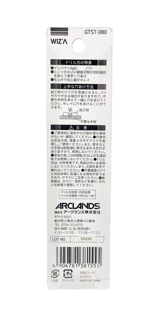 木工用ショートビット 8.0mm GTST-8 2024 9/05 WIZ'A 2024.09.05 × 木工用ショートビット 8.0mm GTST-8ブランド:WIZ'A JANコード:4904781381555商品コード:X32071 規格・品番:GTST-8商品サイズ(mm)-重さ(g)26仕様用途:木材の穴あけ ドリル刃径:8mm 刃長:55mm 刃先:螺旋タイプ商品コメント螺旋刃先が切削抵抗を抑えてすばやく穴あけ。 回転モードで使用して下さい。同じカテゴリーの商品六角軸 下穴ドリル 2.0mm 2PC WZ-PHD20六角軸 テーパー下穴錐 2PC R-34木工用ショートビット 7.0mm GTST-7木工用極短ドリルビット 10mm WZGM-10木工用ショートビット 10.5mm GTST-105木工用極短ドリルビット 9mm WZGM-90木工用ショートビット 3.0mm GTST-3木工用ショートビット 4.0mm GTST-4 WIZ'A 木工用ショートビット 7.0mm GTST-7 木工用ショートビット 9.0mm GTST-9