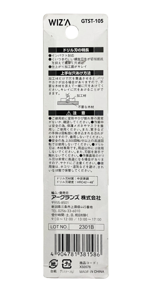木工用ショートビット 10.5mm GTST-105 2024 9/05 WIZ'A 2024.09.05 × 木工用ショートビット 10.5mm GTST-105ブランド:WIZ'A JANコード:4904781381586商品コード:X32076 規格・品番:GTST-105商品サイズ(mm)-重さ(g)34仕様用途:木材の穴あけ ドリル刃径:10.5mm 刃長:60mm 刃先:螺旋タイプ商品コメント螺旋刃先が切削抵抗を抑えてすばやく穴あけ。 回転モードで使用して下さい。同じカテゴリーの商品木工用ショートビット 5.0mm GTST-5木工用極短ドリルビット 6mm WZGM-60木工用ショートビット 9.0mm GTST-9木工用ドリル刃セット 丸軸 8PC WDS-8六角軸 テーパー下穴錐 2PC R-34木工用ショートビット 12.0mm GTST-12木工用ショートビットセット 5PC WDS-05六角軸 木工ドリル刃セット 8PC GTWS-8HH WIZ'A 木工用ショートビット 10.0mm GTST-100 ステップドリル ステンレス用 9段 GTSS-312