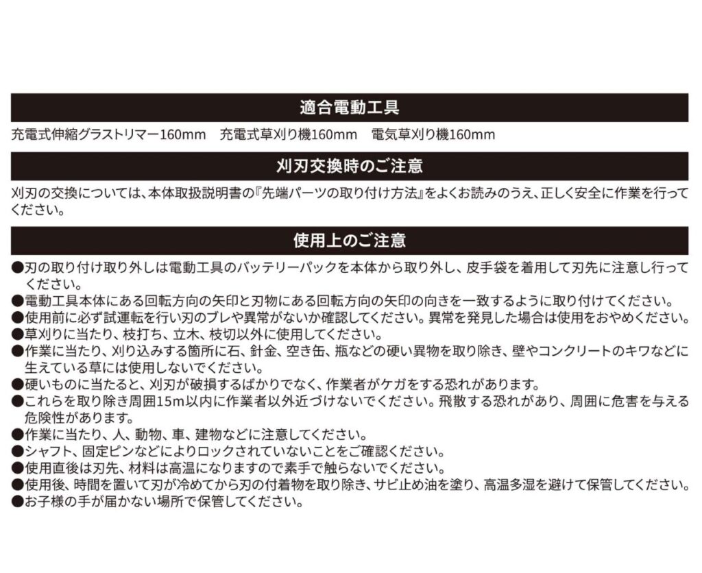 18V充電式グラストリマ-用刈刃 160mm×8P WZGT-160