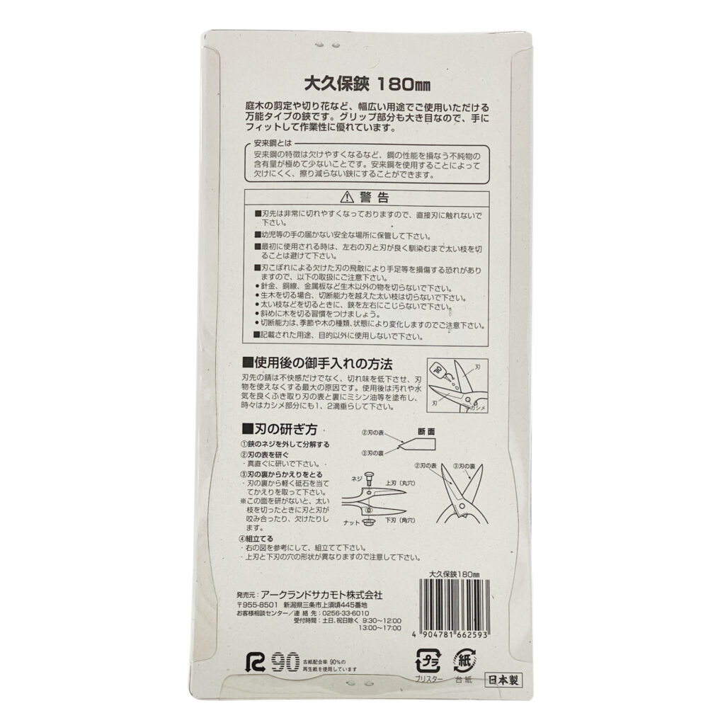 大久保鋏 左利き用 180mm 2024 10/29 長雲齋 2024.10.29 × 大久保鋏 左利き用 180mmブランド:長雲齋 JANコード:4904781668007商品コード:725109規格・品番:-商品サイズ(mm)縦190 x 横22 x 高さ107重さ(g)218仕様切断能力:直径8mm以下 仕様:左利き用 柄:スチール(共柄)商品コメント盆栽用の鋏です。 左利き用に作られています。同じカテゴリーの商品刄長大久保鋏 200mm小型剪定鋏 赤グリップ 180mm小枝切鋏 全鋼 210mm大久保鋏 全鋼 180mm池の坊鋏 165mmコブ切鋏 210mm針金切鋏 200mmアルミハンドル 剪定鋏 アンビル型 長雲齋 木柄 東型鉈両刃 135mm 大久保鋏 180mm