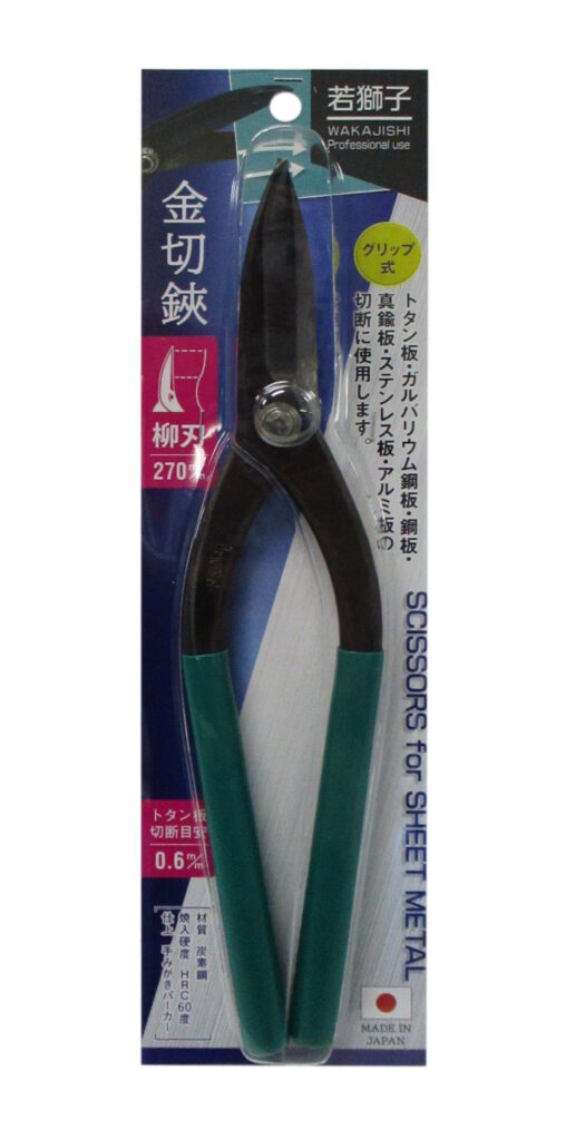 金切鋏 柳刃 270mm 2024 10/29 若獅子 2024.10.29 × 金切鋏 柳刃 270mmブランド:若獅子 JANコード:4904781088492商品コード:125126規格・品番:-商品サイズ(mm)縦285 x 横60 x 高さ30重さ(g)496仕様刃長(約):70mm 切断能力:0.6mm(トタン板)商品コメント薄い鋼板、真鍮板、ステンレス板、アルミ板の切断に使用します。 直線、曲線を切る時に使用します。同じカテゴリーの商品平口矢床 鋼付 150mmツカミバシ 90mmリブプリント板切鋏 300mmシザーズキングC クラフト工作ばさみ WZ-SKF210シザーズキングD ベント万能ばさみ WZ-SKB200金切鋏 柳刃 240mmタフカット万能鋏 ミニ 直刃 200mmタフカット万能鋏 直刃 250mm 若獅子 金切鋏 柳刃 240mm 金切鋏 エグリ刃 180mm