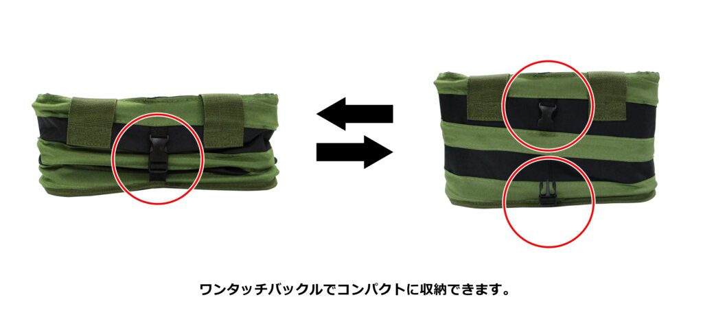 使わない時はたたんで、固定バックルでワンタッチロック。