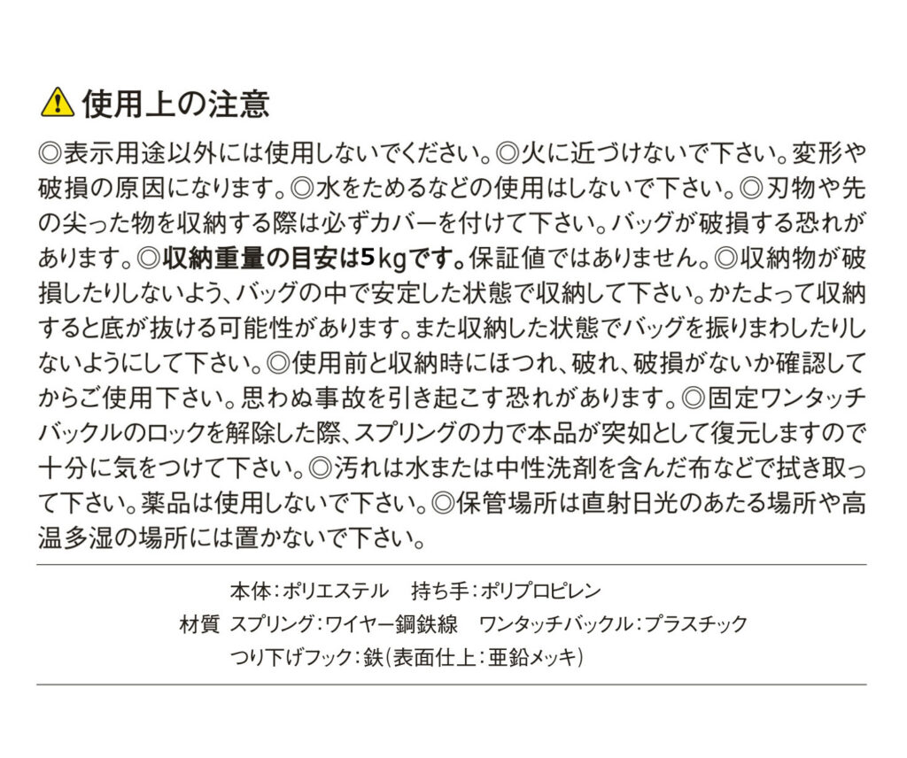 収納重量の目安は5kgです。