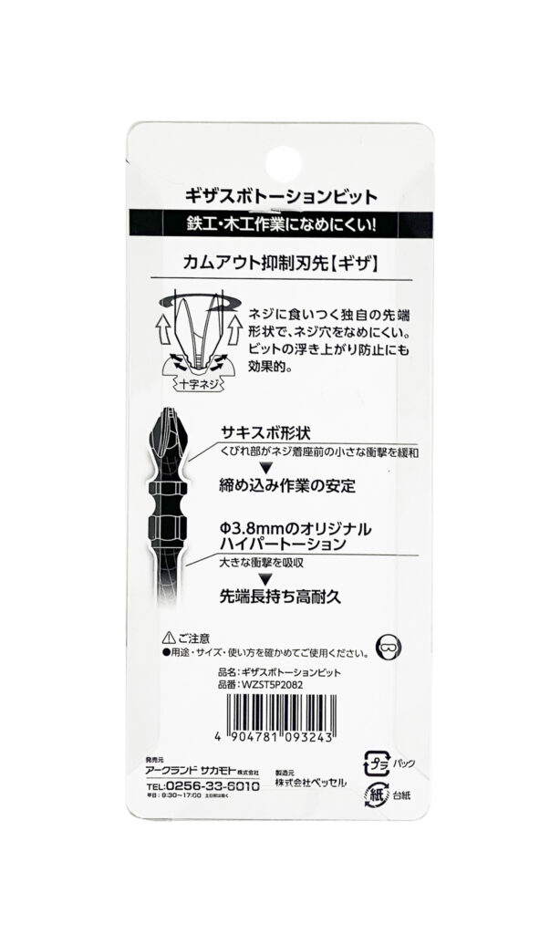 ①凄くナメにくいカムアウト抑制刃先「ギザ」