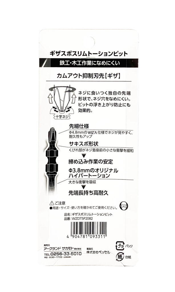 ①凄くナメにくいカムアウト抑制刃先「ギザ」
