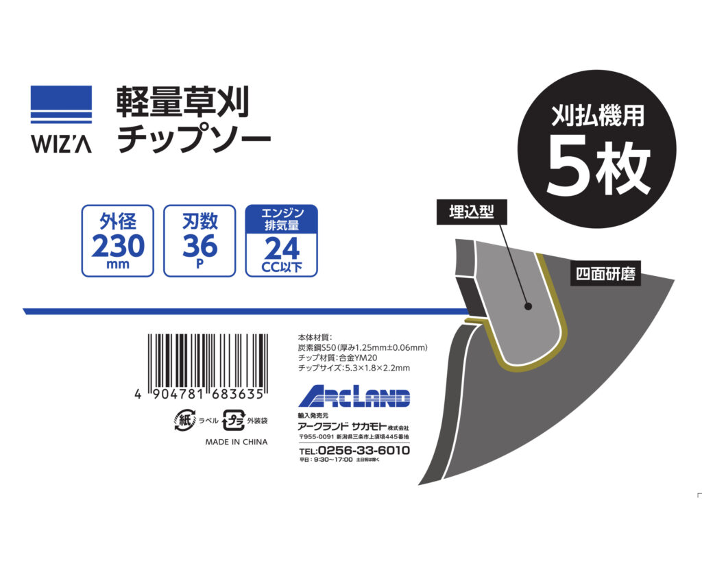 草刈機・刈払機を用いた草刈りの際にご利用いただく軽量の草刈チップソーです。
