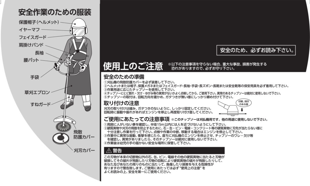 用途:草刈機・刈払機を用いた草刈りの際に。