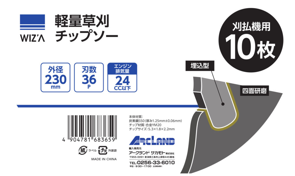 草刈機・刈払機を用いた草刈りの際にご利用いただく軽量の草刈チップソーです。