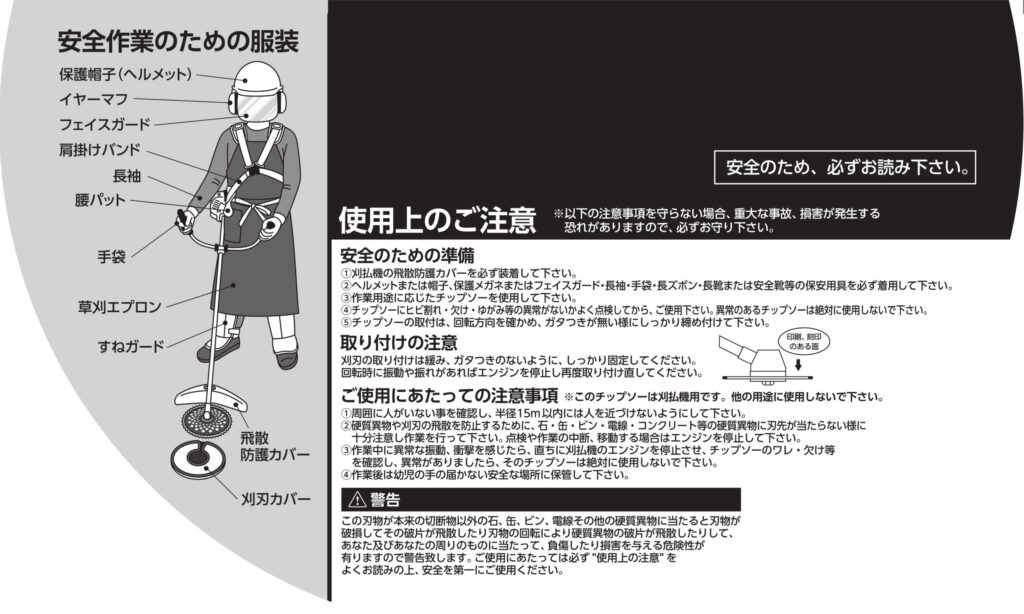 用途:草刈機・刈払機を用いた草刈りの際に。