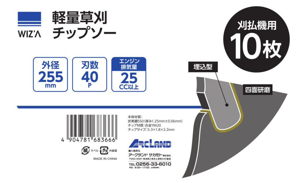 草刈機・刈払機を用いた草刈りの際にご利用いただく軽量の草刈チップソーです。