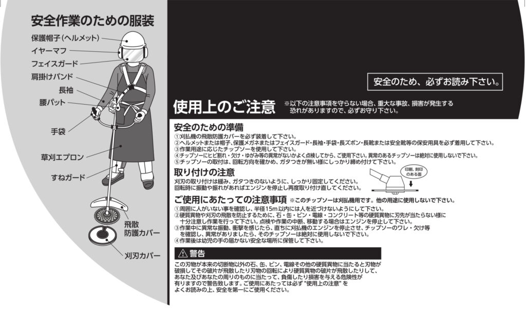 安全カバー、安全靴、保護メガネなどをご使用ください。