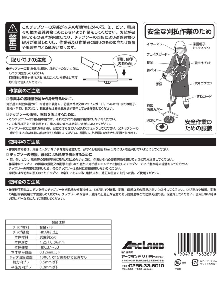 草刈機・刈払機を用いた草刈りの際にご利用いただく草刈チップソーです。