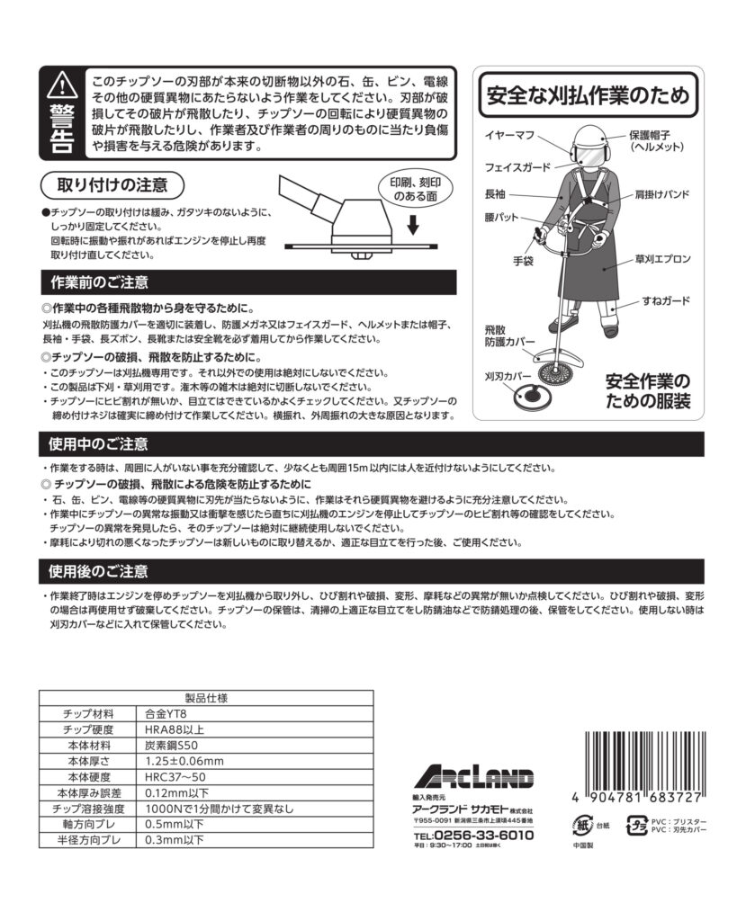 草刈機・刈払機を用いた草刈りの際にご利用いただく草刈チップソーです。