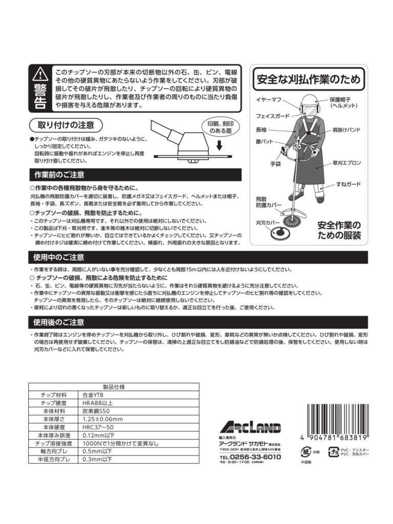 草刈機・刈払機を用いた草刈りの際にご利用いただく接地刈用の草刈チップソーです。