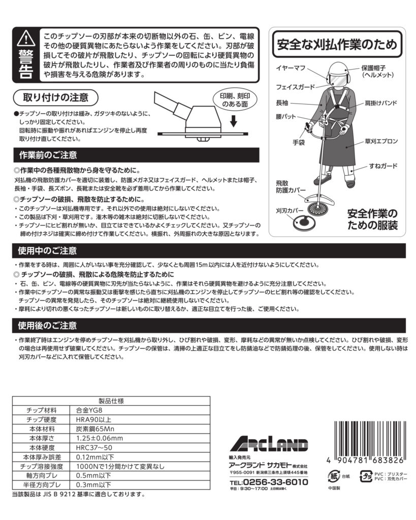 充電草刈機・刈払機を用いた草刈りの際にご利用いただく草刈チップソーです。