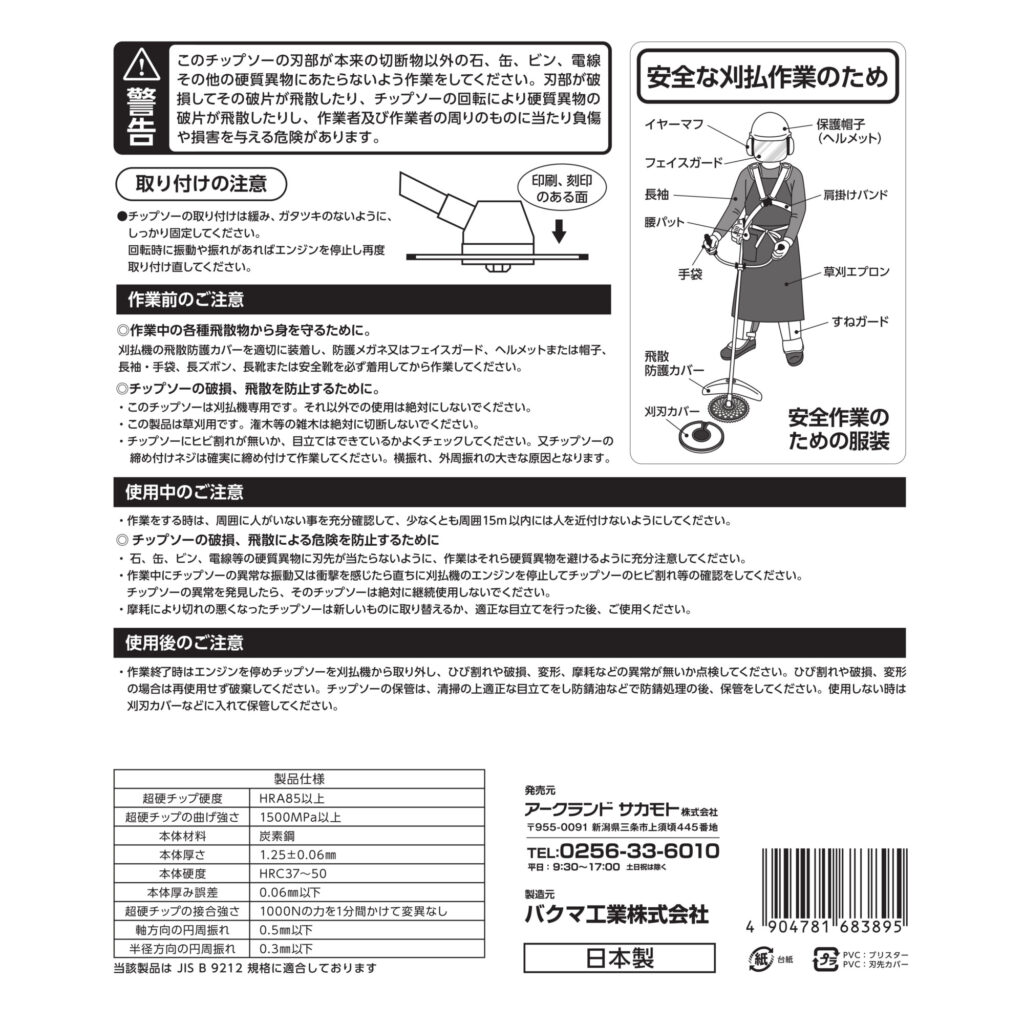 草刈機・刈払機を用いた草刈りの際にご利用いただく草刈チップソーです。