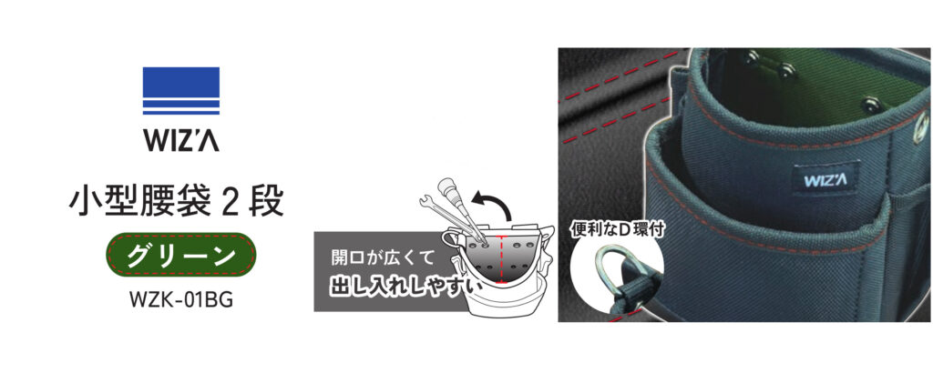小型・軽量での道具をコンパクトに収納可能、丈夫な2段式腰袋です。