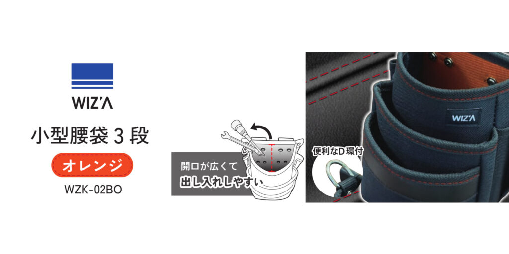 小型・軽量で道具をコンパクトに収納可能、丈夫な3段式腰袋です。