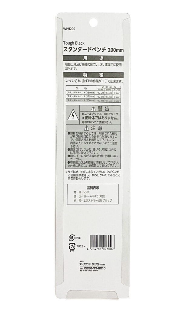 切断能力(鉄線/銅線/より線):Φ3.4/Φ4.0/5.5mm2