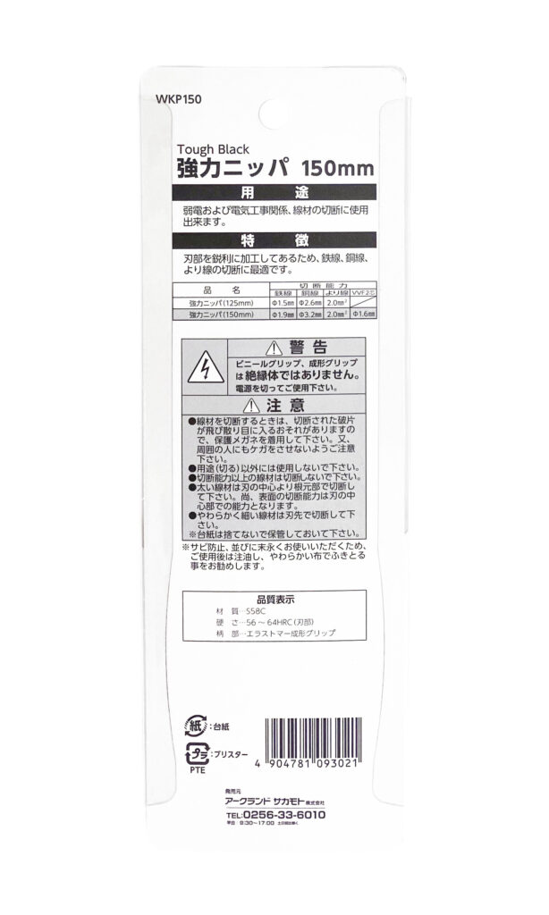 WIZA ブラック強力ニッパ150mm
